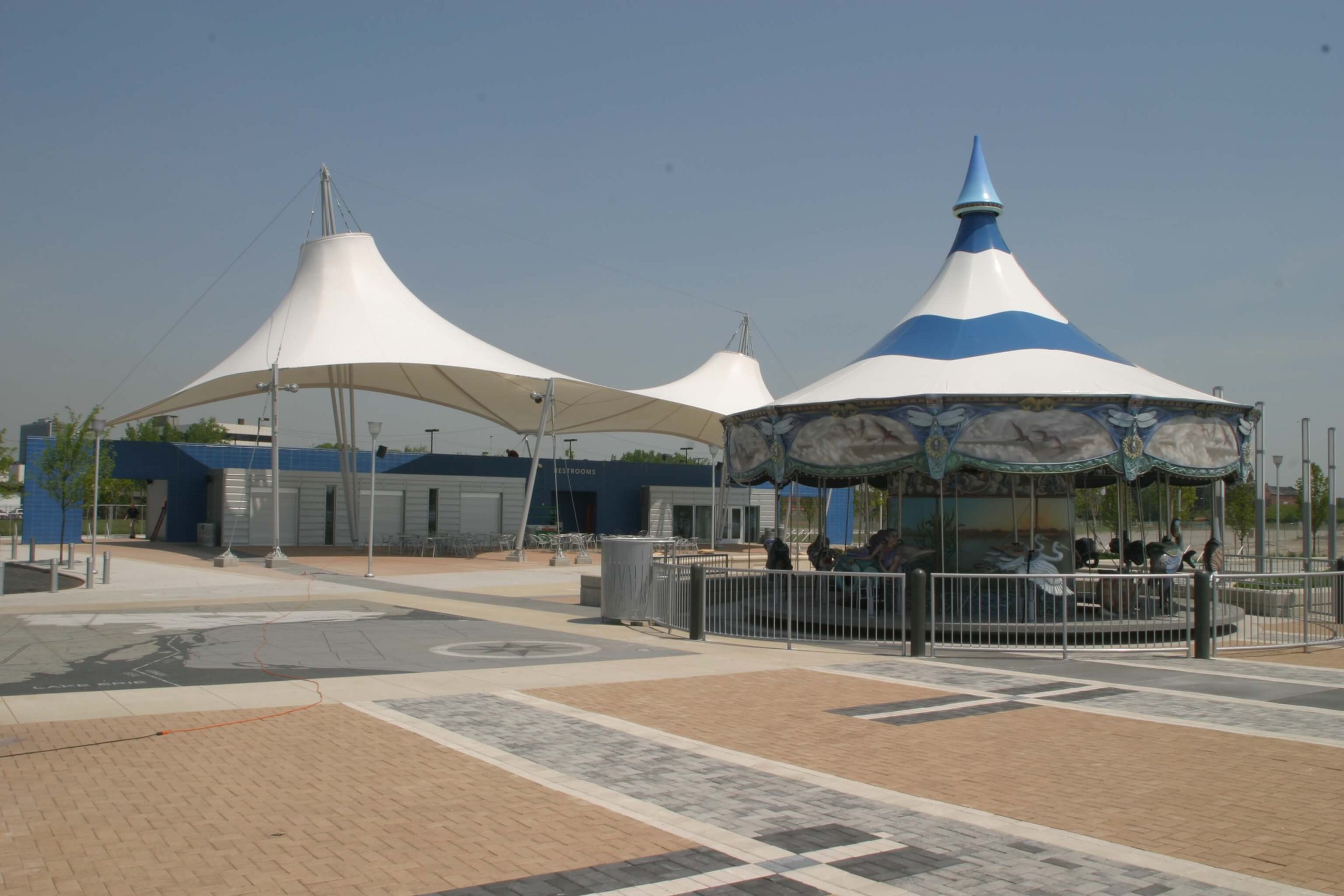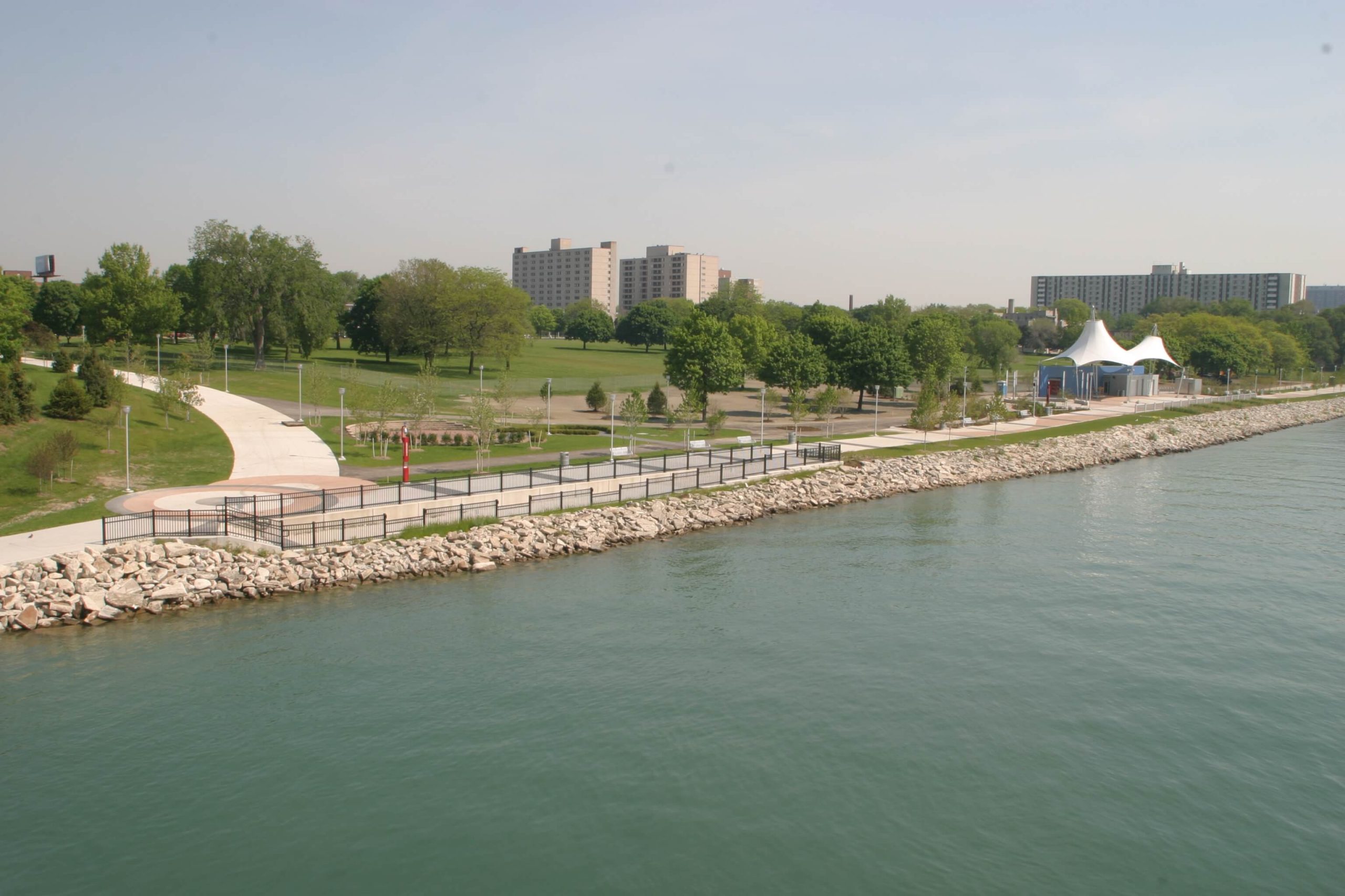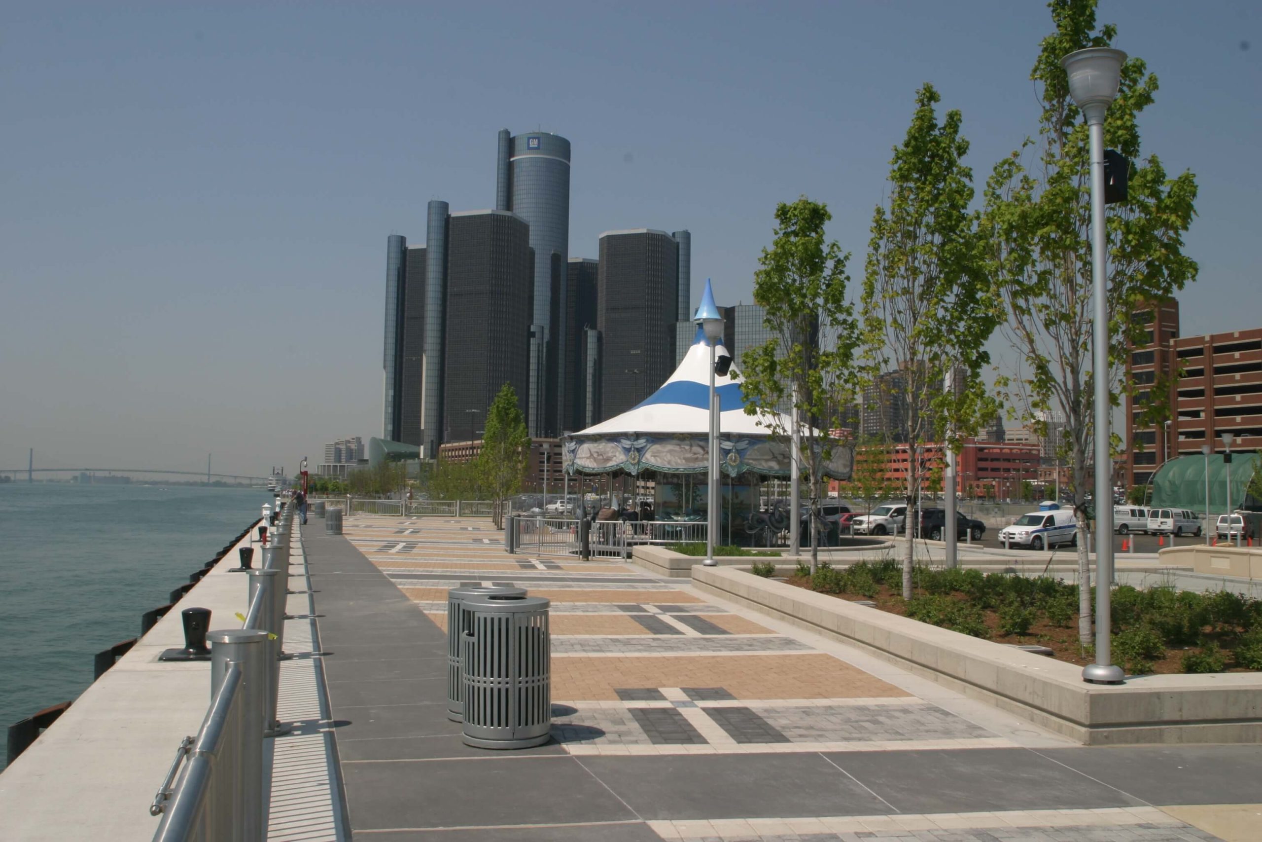 Project Description: A 1.6-acre public square in the heart of Downtown Detroit’s Central Business District. The park includes a granite fountain, gardens, events plaza, ice staking rink, and an Au Bon Pain Bakery Café.
