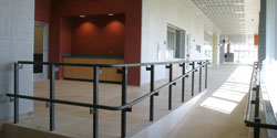 Project Description: Renovation of the existing escalator enclosure connecting the Wayne and Michigan exhibit halls to open up the upper floor area and enhance the lower level. Demolition work included existing fire-rated masonry walls, hollow metal doors and frames, ceilings and flooring. New construction includes masonry walls, aluminum framed glazed walls, aluminum doors, a large drywall soffit, terrazzo flooring, carpeting and miscellaneous mechanical / electrical work.